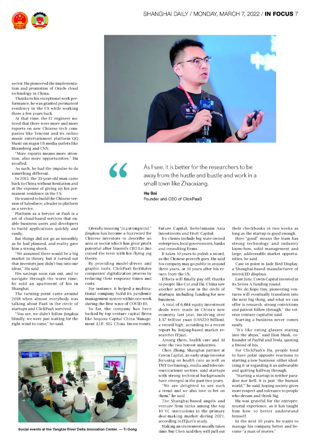 近日,ng28南宫国际创始人、CEO胡柏接受了《上海日报》采访,关于自己当初为何选择创立ng28南宫国际,又为何将公司落户于上海青浦,分享了其背后的故事。
